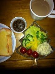 そう言えば、来週の月曜日には、人間ドックがあるし…ちょっと血液綺麗にしとこうと思って、今朝は食パンとサラダ。