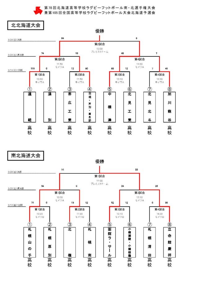 第105回全国高校ラグビーフットボール大会の北海道大会は既に北北海道が遠軽高校。南北海道が立命館慶翔と花園出場校が決定している。
