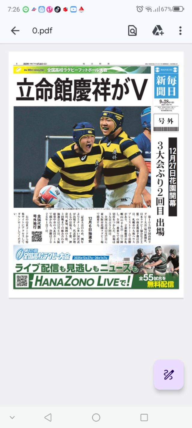 今回は準決勝で優勝した立命館慶祥に敗れたがまたいつしか花園の舞台に立つことを期待してやまない。