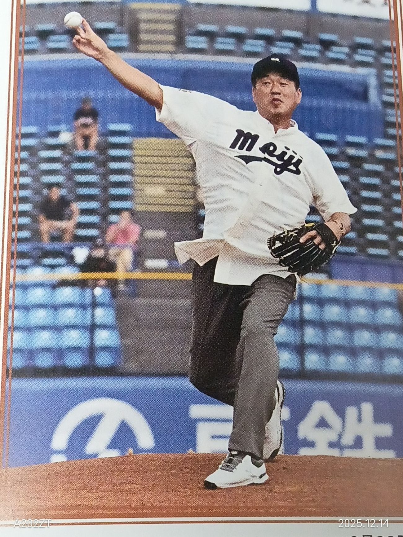 明治大学では、鹿取、武田、そして我らが御大御大二号の広澤克実が始球式で投げた。