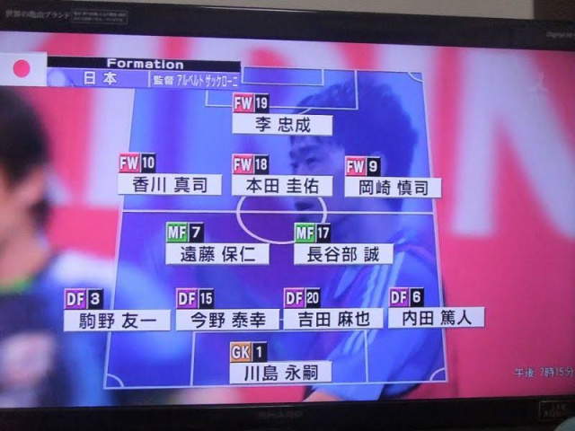 MF #18 本田・#7 遠藤(#14 家長)・#17 長谷部(#22 阿部)・#10 香川(#13 萌)