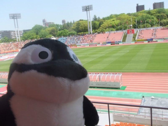 会場の瑞穂陸上競技場はまぁるさんのエスコートもあり