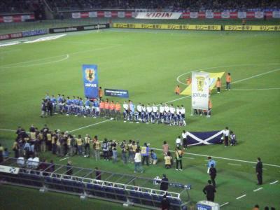 国歌は島谷ひとみさんが独唱、君が代を歌っている時に昨日のひろ☆さんの日記を思い出し遠藤と同じ気持ちになりました。スタジアムが一つになる瞬間です。
