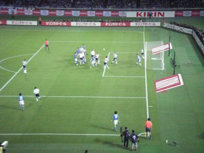試合の話に戻りますが無得点で終わってしまったら、今日テスト失敗?と思った矢先、途中出場の駒野が上げたクロスに相手DFが合わせオウンゴールを誘発し日本がやっと先制点!