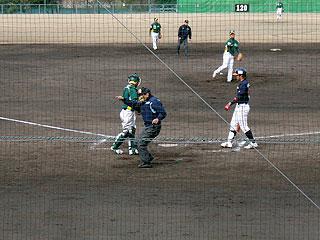 3回表、愛媛先頭2番寺嶋が三塁内野安打で出塁するも、次打者3番長崎が6−4−3のゲッツー。続く打者も凡退。