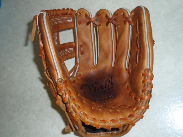 早朝野球の監督用のグローブを型付け中