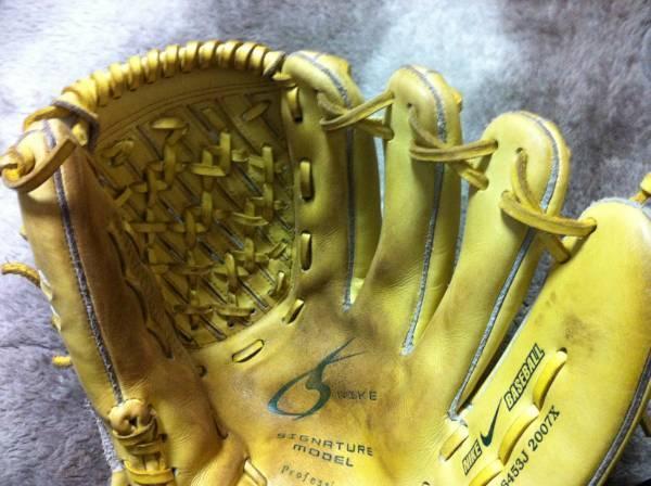 YGマークに 島貫 と刺繍のあるグローブを使っていた
