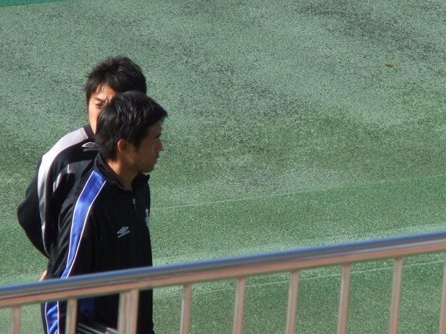 横顔しか見えてないけど、明大の川口信男コーチ。