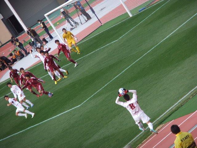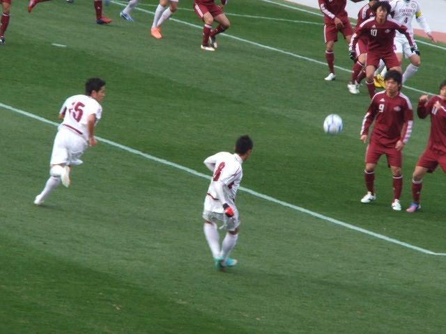 40分、早大が攻め込み、島田くんのクロスがゴール前へ。