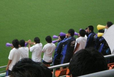 そんな中、選手と一緒にびしょぬれで応援する明大応援団!