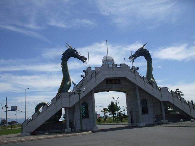 まず、北海道のドラゴンズファンが集合しそうな景色から、これは北海道の旭川市から西南約50KMにある、北竜町の国道275号線に面した道の駅入口の北竜門です。