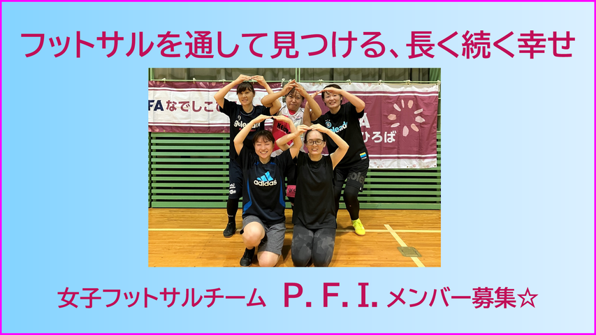 【女子フットサルチーム P.F.I.】では、初心者指導研究20年の私が練習を行い、初心者の方でも安心して参加できるようにしています。