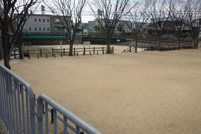↑ 最初現地に行く前には「グランドの跡地かも?」と思っていた公園。