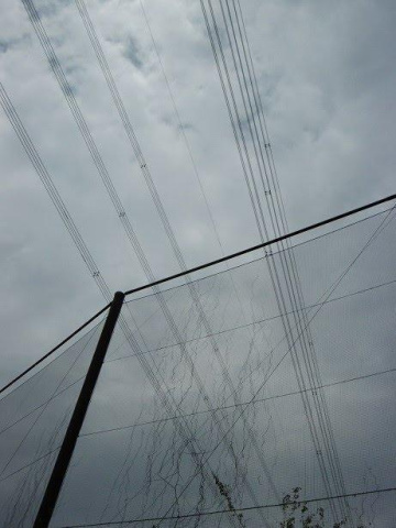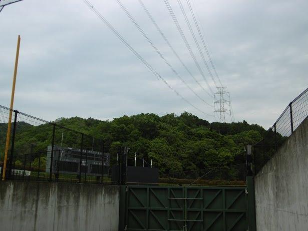 グランドの上を通過する送電線です。写真で分かるように右中間からレフト上空にかけて送電線が通り抜けています。