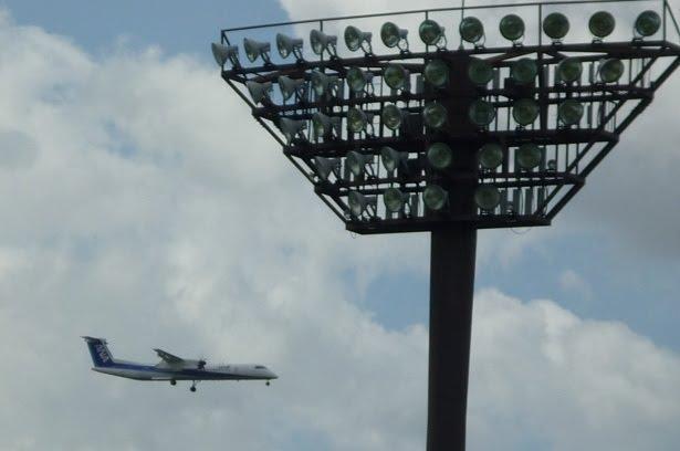 ここの特徴は以前も紹介しましたが、伊丹空港(大阪国際空港)が近いので着陸する旅客機が次々通ることです。色々な機体が見られるので試合観戦に疲れた時には本当にいい気晴らしになります。