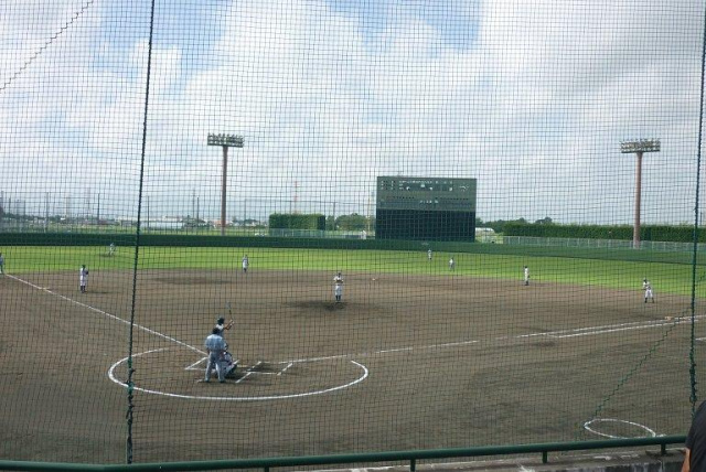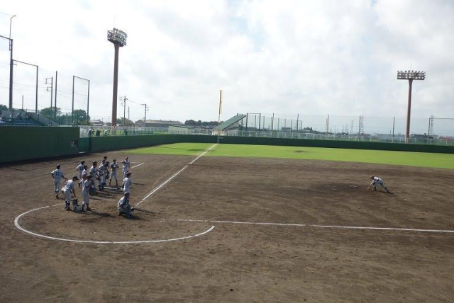 グランドは広くて立派です。両翼98m、センター122m。内野クレー、外野天然芝です。
