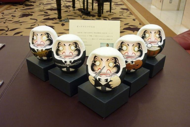 ピアノの横にあるので楽団の格好をした白いダルマ。