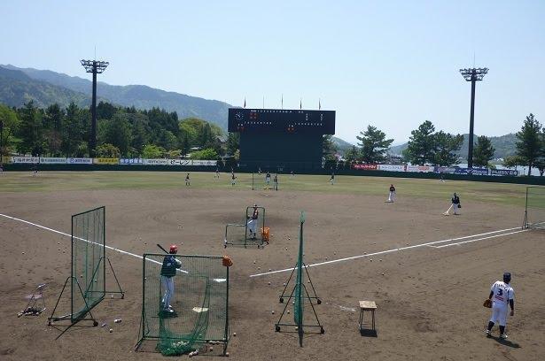 球場のすぐ横には2面のグランドもあり、少年野球の練習が行われていました。