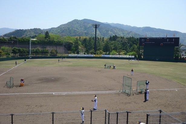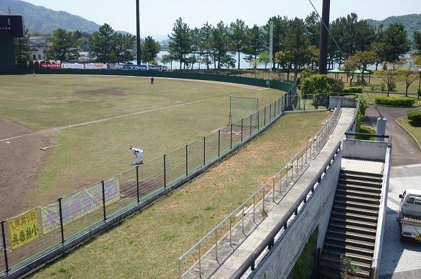 問題はこれ。外野スタンドが無く、このように外からグランドが丸見えなのです。