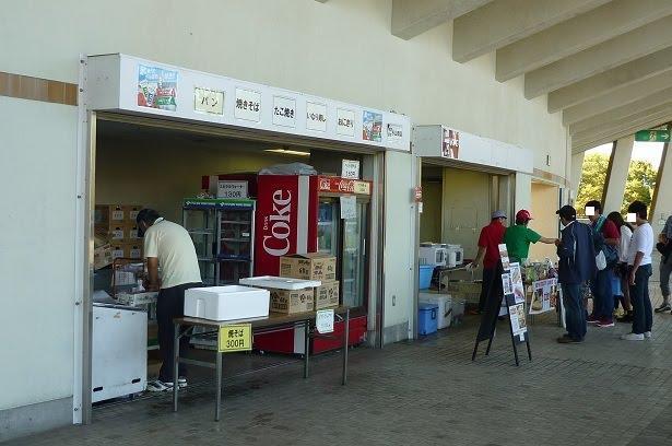 上の1枚目は飲食物の売店。販売していた食べ物は焼きそばやホットドッグなど。おそらく会場により異なると思います。