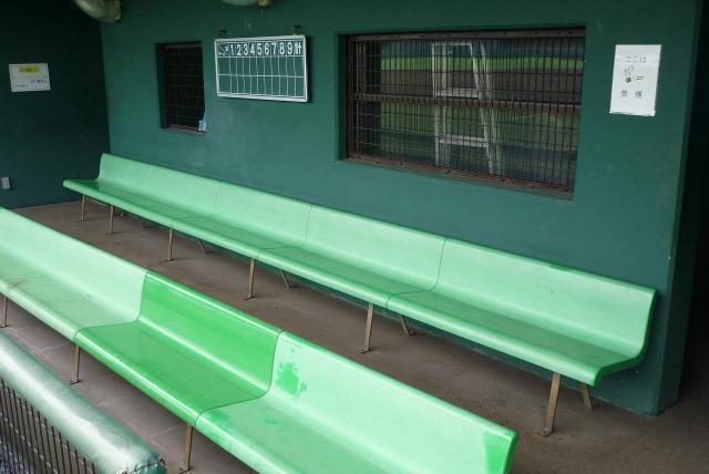 写真は1塁側から見た3塁ベンチ周辺。(消えました。汗)