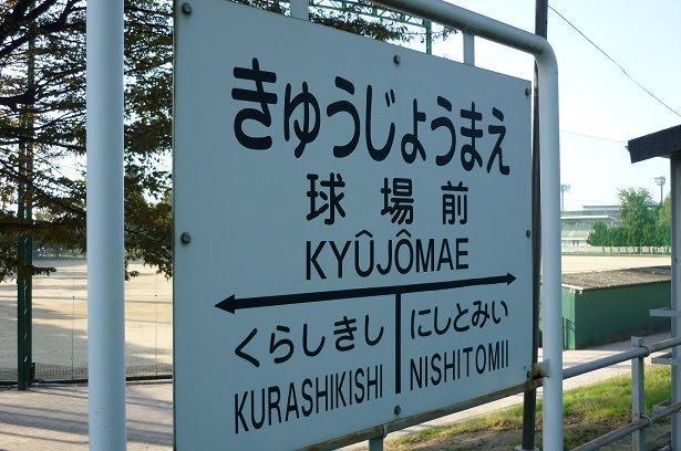 以前クイズに使った駅表示。「球場前」というマンマな名前。