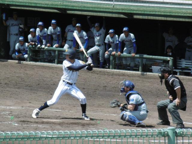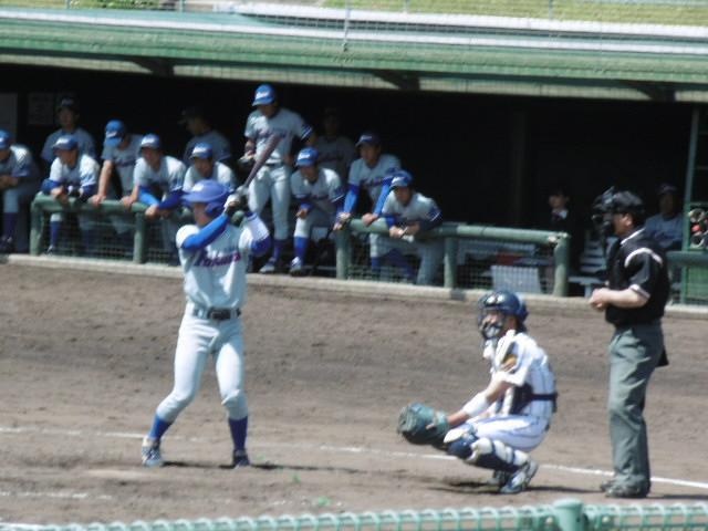 都合で出発が遅れ、到着時点では3回裏の関国大の攻撃中でした。その時点では1-0で大産大がリード。