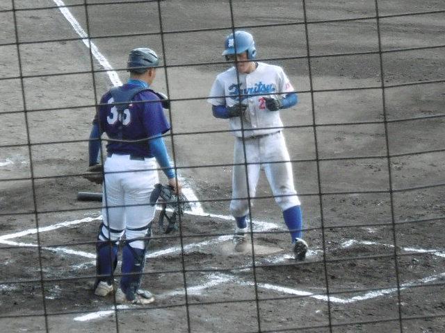 均衡を破ったのは府大。7回表にタイムリーが出てついに1点先取。