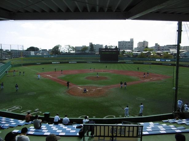 しかしこうやって見ると住宅がすぐそばにたくさんあるので、ナイター時に騒音問題等が起こらないのか気になります。(近鉄の藤井寺球場みたいに。汗)