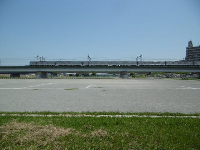 それまでの道中、河川敷には草野球場がいくつもあるのですが、この橋梁手前のグランドは他よりも一回り大きいです。名称は「川崎市多摩川丸子橋硬式野球場」。一見軟式用ですが、硬式で利用出来るのですね。