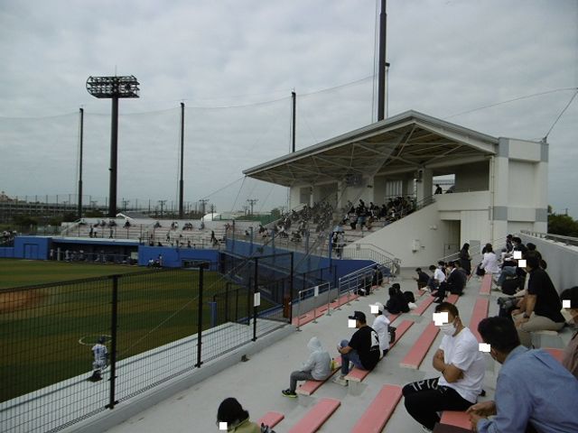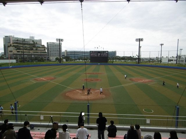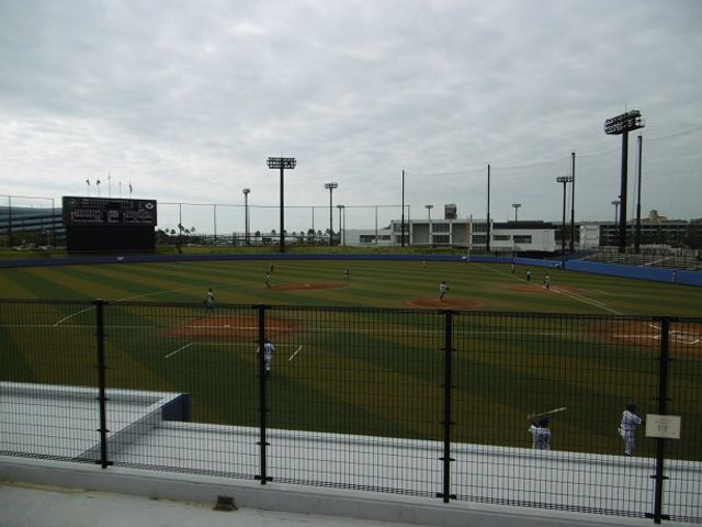 両翼98m、センター122m、と広さは十分。海に近い為か風向きは頻繁に変わりました。広さと風の影響でHRが出にくい球場かもしれません。