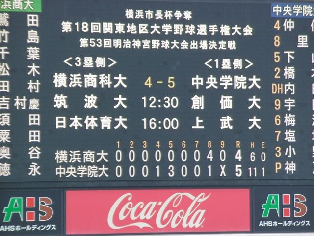 2年連続でハマスタへ(神宮大会関東代表決定戦:中央学院大ー横浜商大戦)