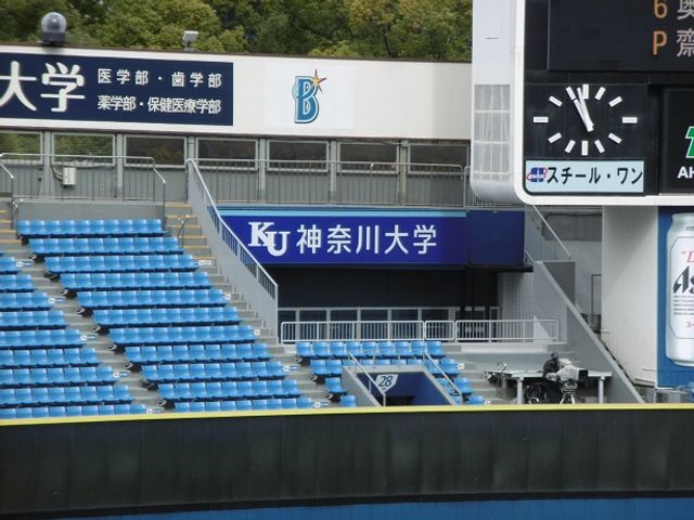 ↑ 余談ですが、上はハマスタにある神奈川大の広告。「神大(じんだい)」が略称ですが、近年は「KU」のロゴを強調しているようです。