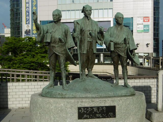 今回唯一見た名所(?)はJR水戸駅北側にある水戸黄門御一行様の銅像のみ。