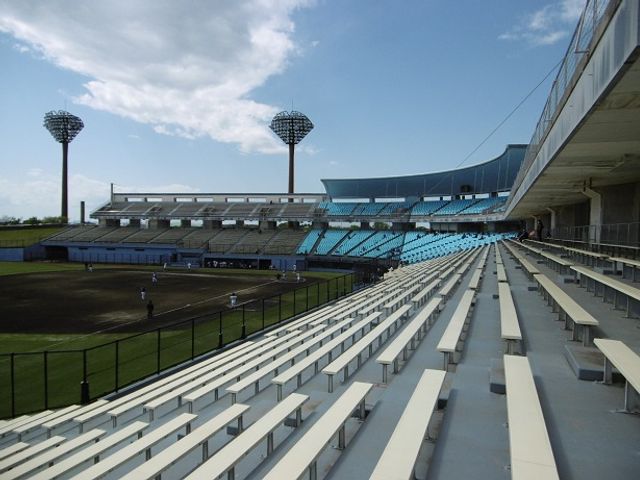 以前は「勝田市民球場」という名称でしたが、市の統合により現在の名前になりました。