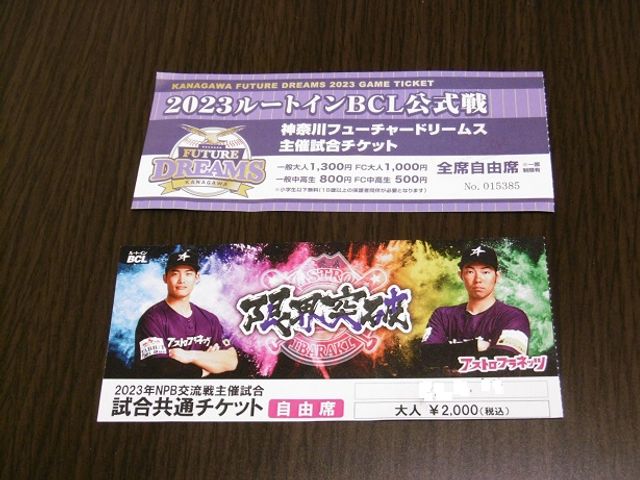 下は前回遠征した茨城アストロプラネッツのチケット。茨城のは2,000円もしますが、これはNPBとの交流戦だったからで、普段のリーグ戦は1,500円です。(価格は全て当日一般売り)