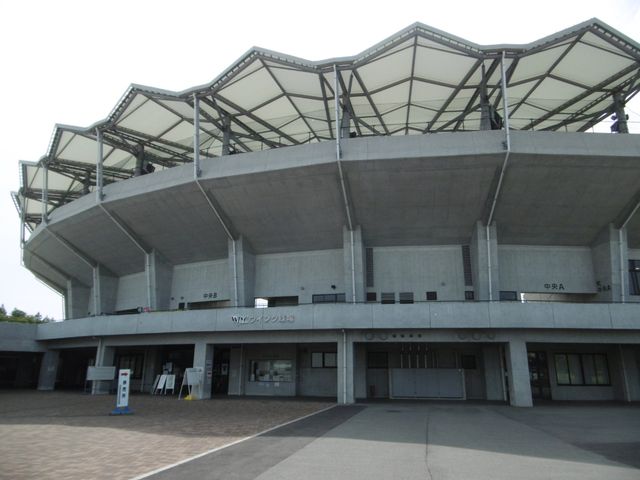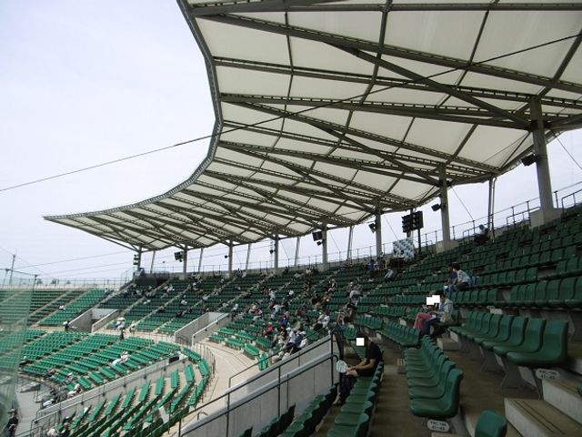 滋賀県の皇子山(おうじやま)球場を連想するギザギザの膜屋根が設置されました。余談ですが、皇子山のギザギザ膜屋根もリニューアル後に設置された物です。もしかしたら施工業者が同じなのかもしれません。