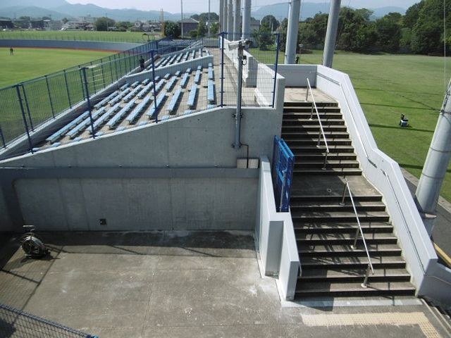 スタンドの左右に出入りの階段があり、降りた近くに飲料の自販機が設置されています。しかし食べ物を確保出来る店等が球場周辺には無いので持参が必須です。