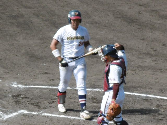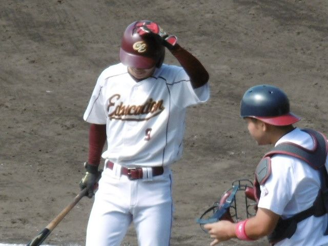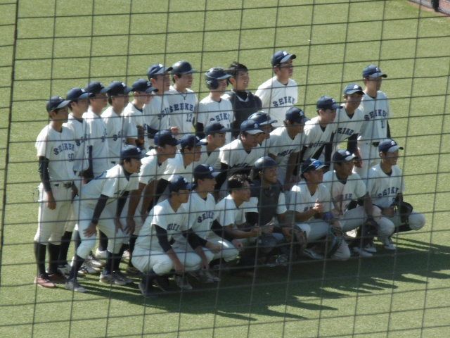 水色ユニに濃紺とエンジ基調で、これだけ見れば派手目ですが、他校のユニがもっと派手なのでオーソドックスにさえ感じます。