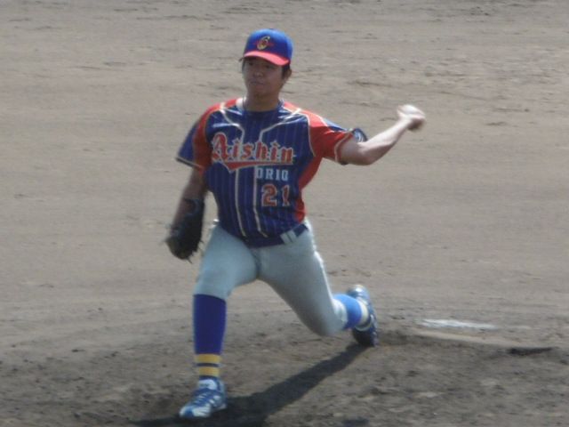 本来は白地に黒の縦じまユニなのですが、この時は社会人との交流試合だった為か、図形のようなマークが入ったユニを着用していました。練習用あるいは非公式戦用なのでしょうね。