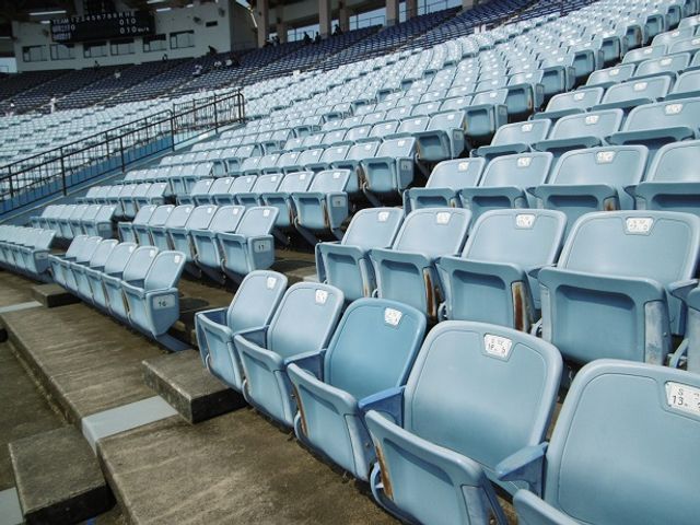座席はバックネット裏~1・3塁側の前半部が背もたれ付きの個別席。座面は跳ね上げ式。
