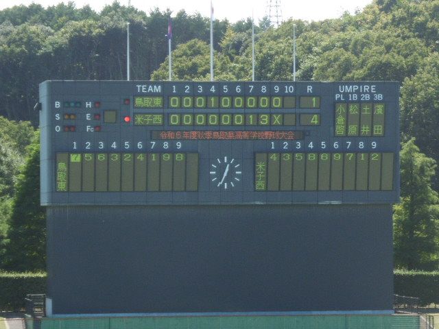 鳥取東に4回表ソロHRが出ただけで、1-0のまま試合は終盤までサクサク進みました。