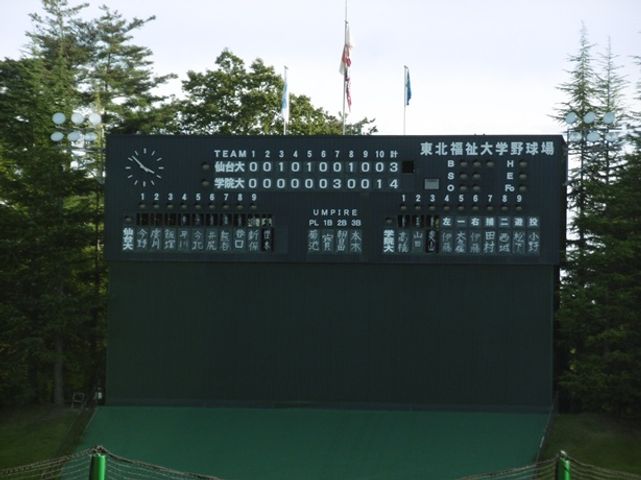 試合会場は「東北福祉大学野球場」。 仙台六大学は基本的にこの球場で一日2試合実施されます。