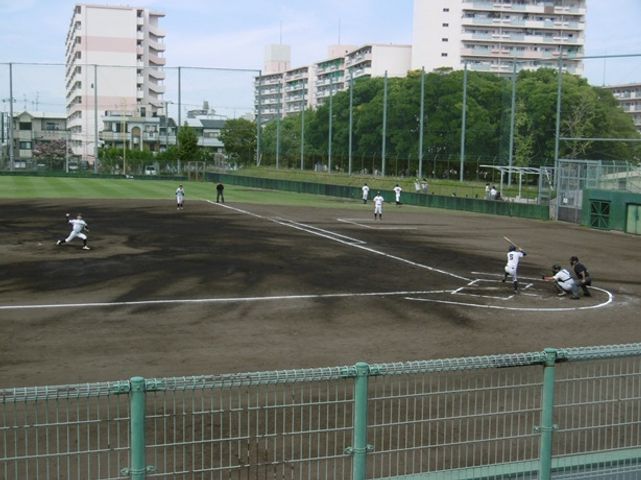 ここはラボーラの前身「野球SNS」時代に当時の主要なメンバーが寄り集まって第1回目の親睦試合を行った記念すべき場所です。私自身も仕事の合間にちょっとだけお邪魔して観戦させていただいた懐かしい思い出のある球場です。(赤で囲んだ所には売店がありますが、この日は休業)