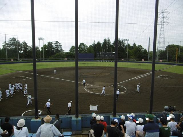 ↑ 青空ではないのでイメージ出来ないでしょうが、無茶苦茶暑かった西東京大会。会場の昭島球場はスタンドが小さく日傘を差すことが出来ず、更に人が密集していたので苦行になりました。