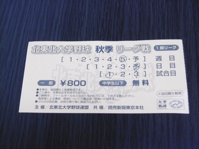 ↑ 仙台六大学のチケット。白っぽく写っていますが実際には水色です。