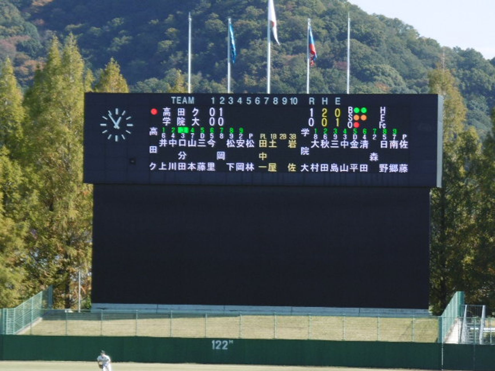なお、以前の画像を見るとスコアボードは右中間寄りでパネル式でした。この改修工事は近年実施されたようで、キレイなボードでした。