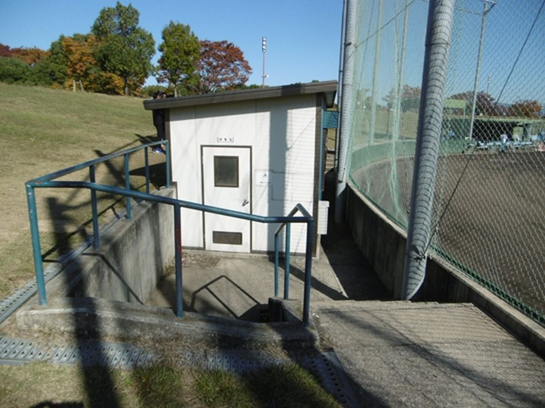 トイレは場外にしかなく、1・3塁側それぞれの階段で行き来します。(写真は1塁側)