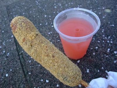 スタジアム着いてからは日陰で涼みながら、楽しみにしてた「Johnny's」のリングイッサを食べちょりました。