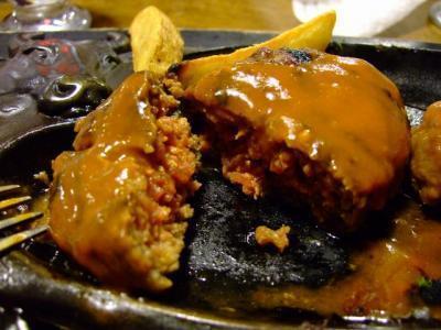 牛肉100%でつなぎも使ってない肉肉しい感じといい、結構レアな焼き具合といい、想像してたよりだいぶ美味かったです(。・ρ・)